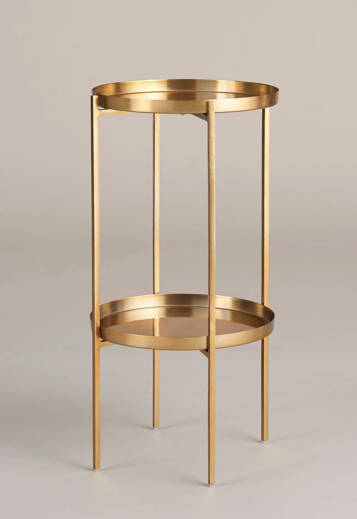 Piedestal i lackad metall med mässing finish, som också kan användas som sidobord, från Ellos Home. Läs mer och köp här.
