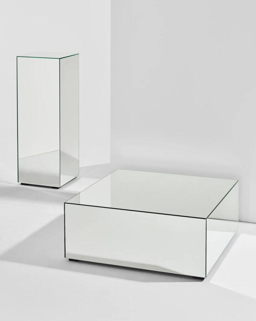 Piedestal med spegelglas på sidorna och toppen, från Pastill. Läs mer och köp här.