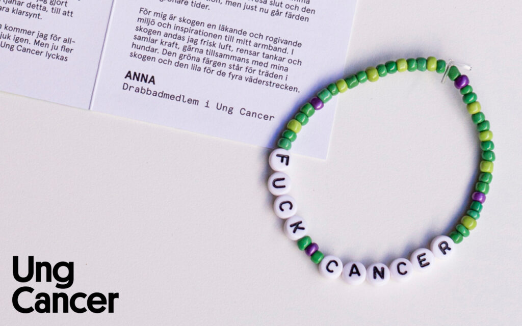 Ung Cancer finns till för att stötta unga vuxna som själva drabbats eller lever nära någon som drabbats av cancer. De finns i gapet som ofta uppstår mellan livet på sjukhuset och livet utanför, och bidrar med både psykosocialt stöd och ekonomiskt stöd (för de som på grund av cancern har svårt att få ekonomin att gå ihop). När du köper en julklapp i Ung Cancers webbshop är du med och stöttar deras verksamhet och bidrar till en strimma ljus och hopp i allt mörker. I dagens lucka vill vi tipsa om ett särskilt armband, “Annas armand”. Anna är medlem i Ung Cancer och när hon var 24 år fick hon ett bröstcancerbesked. Nedan kan du läsa om hennes berättelse och vad armbandet symboliserar och betyder för henne.